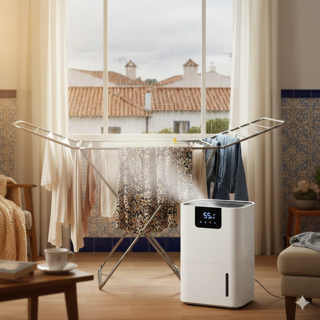 Dica: Mantenha o conforto no inverno: No Algarve, a humidade relativa do ar atinge facilmente os 80-90% durante os meses mais frios. Utilize um desumidificador para evitar o bolor, proteger os seus aparelhos eletrónicos e facilitar o aquecimento da sua casa. O ar seco aquece mais rapidamente do que o ar húmido!