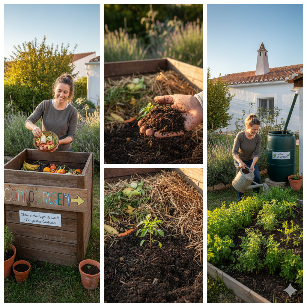 A Dica: Se o expat tiver um pequeno jardim ou terraço, deve iniciar a compostagem doméstica. No Algarve, muitas Câmaras Municipais (como a de Loulé ou Lagos) oferecem compostores gratuitos ou descontos na taxa de lixo para quem composta. É a forma ideal de reduzir o lixo doméstico e criar fertilizante natural para o "Jardim Mediterrânico".