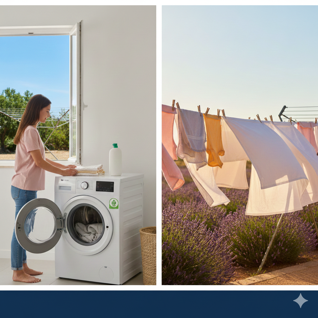 Lave a frio: O sol do Algarve seca a roupa num instante, não precisa de secadora nem de lavar a 60°C.