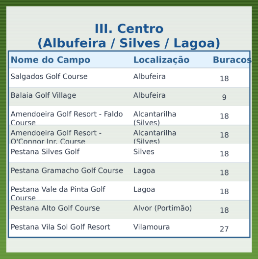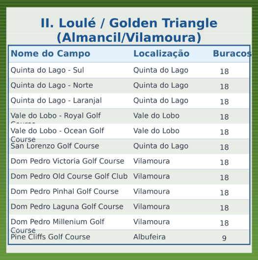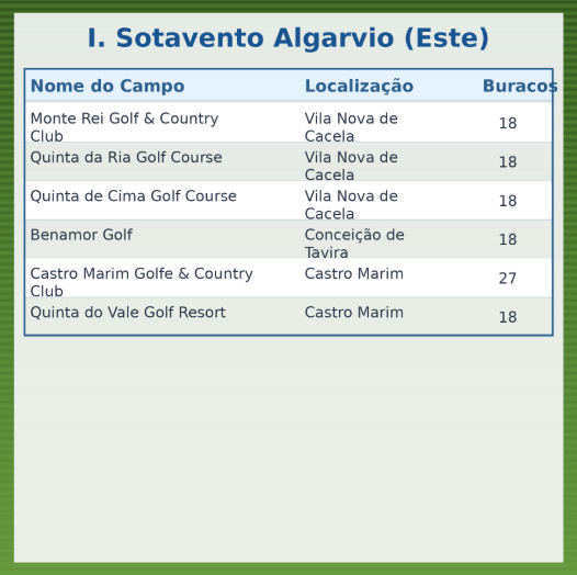 ⛳ Lista Completa dos Campos de Golfe do Algarve